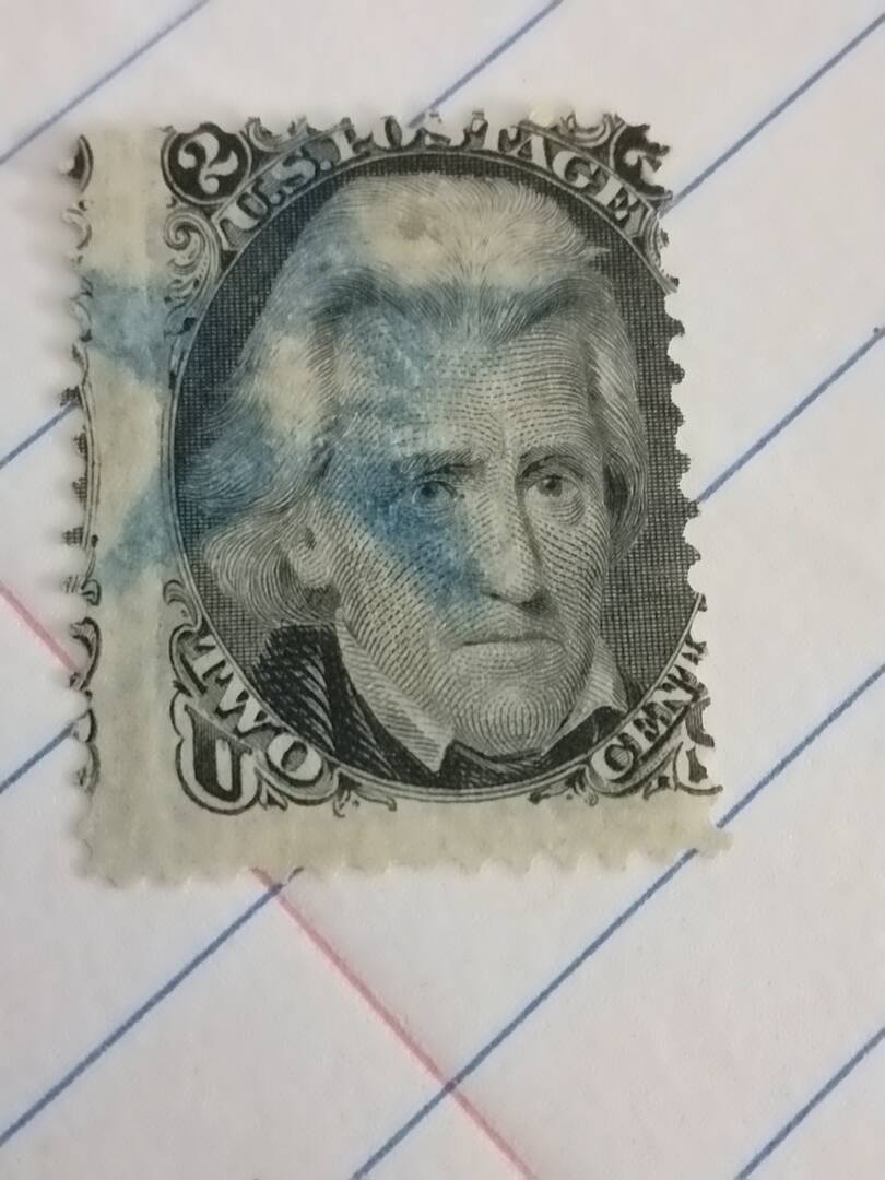 This 2 cent Andrew Jackson stamp (aka “Black Jack”) issued in 1863. Earliest known usage (EKU) off cover is July 1, 1863.